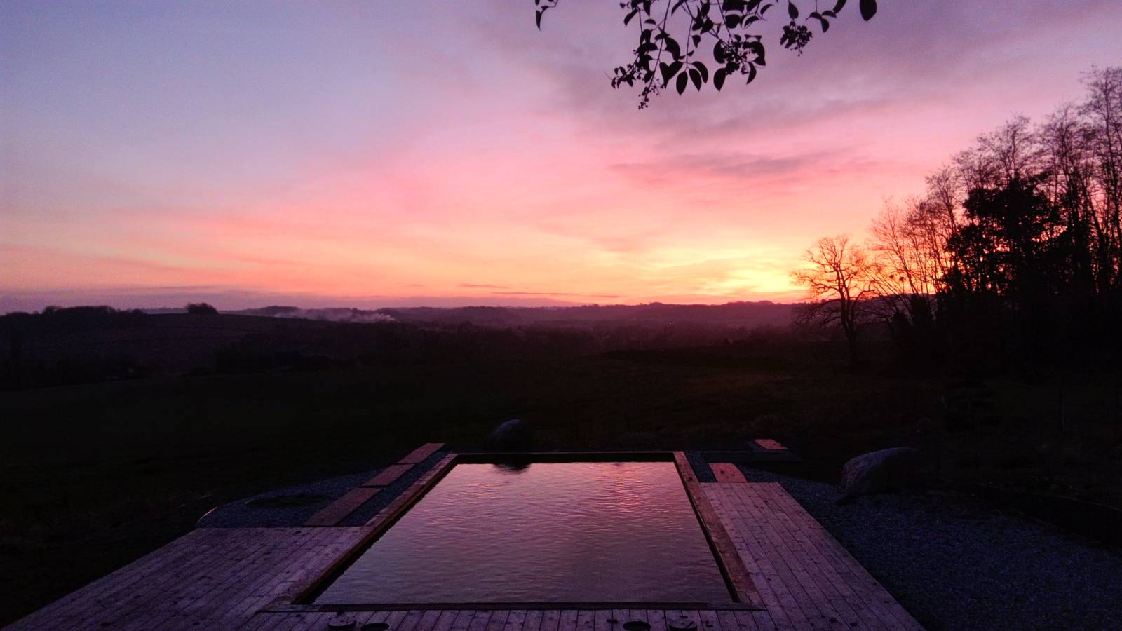 La robustesse de cette piscine a été mise en valeur par des photos capturant des couchers de soleil splendides et même une vue sous la neige. Ce projet à proximité d'Orthez, dans les Pyrénées-Atlantiques, témoigne de notre engagement à concevoir des piscines durables avec une filtration naturelle.